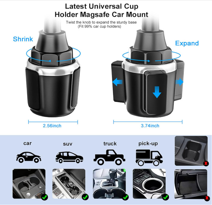 Soporte magnético para teléfono en portavasos, base ajustable y brazo flexible